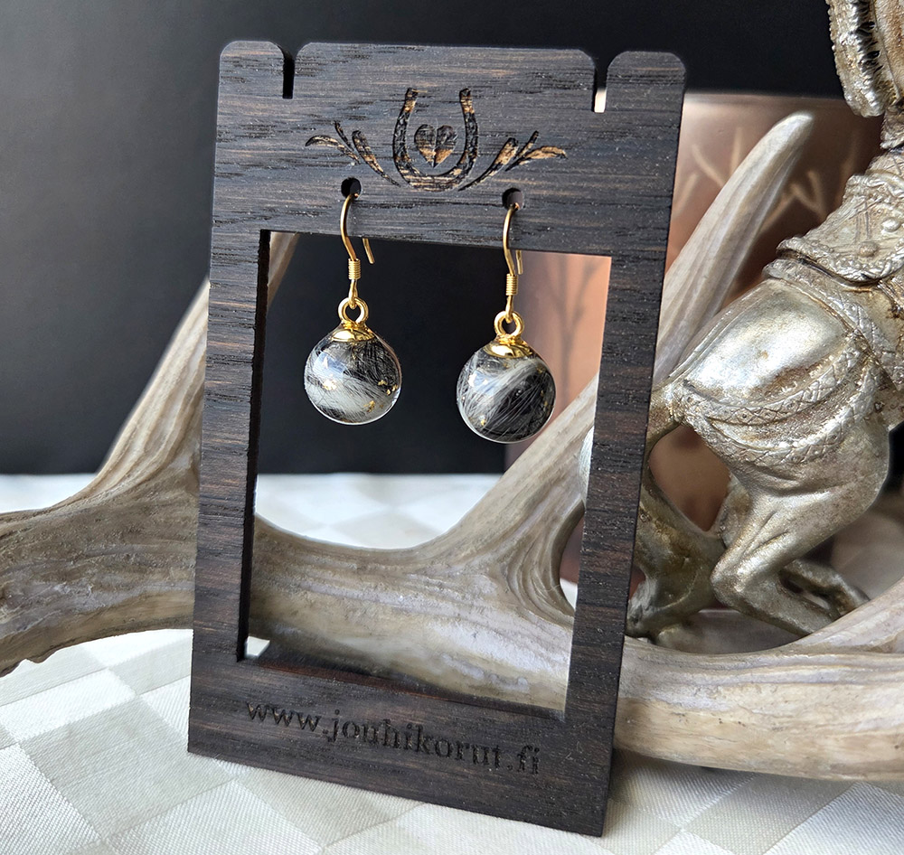 Huom! Koruihin upotettujen jouhien väri saattaa muuttua tummemmaksi valmistusvaiheessa, jolloin lopputulos voi olla hieman erilainen verrattuna irrallisiin, ”kuiviin” jouhiin.