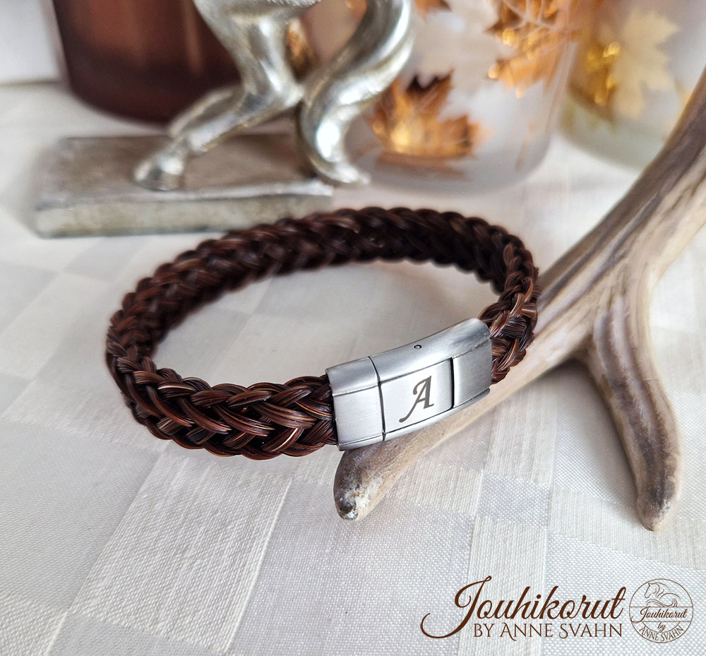 Punoksen leveys n. 1cm. Valitse haluamasi pituus (yleisin pituus naisille 18-19cm ja miehille 21-22cm) ja lisää kaiverrusteksti (yksi iso kirjain tai enintään neljä kirjainta).